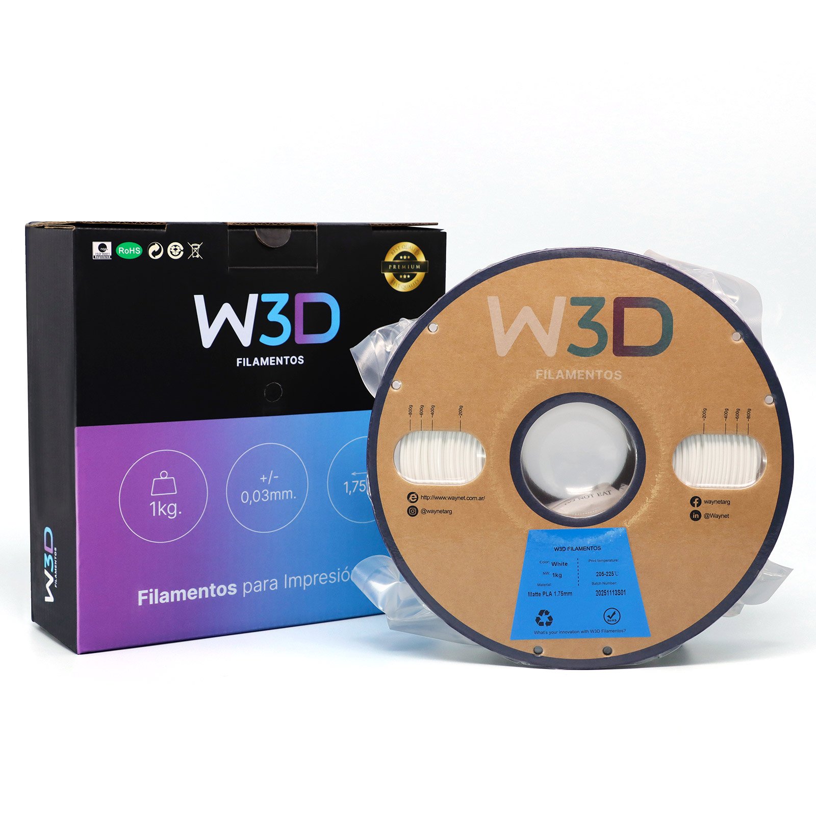 Nuestro compromiso es con la calidad y con el planeta. El filamento W3D viene en un innovador carrete de cartón 100% reciclado. Sus exclusivos bordes engomados le dan la rigidez necesaria para funcionar de manera impecable en cualquier impresora, incluyendo los modernos sistemas de alimentación automática (AMS) de Bambu Lab y (CFS) de Creality.