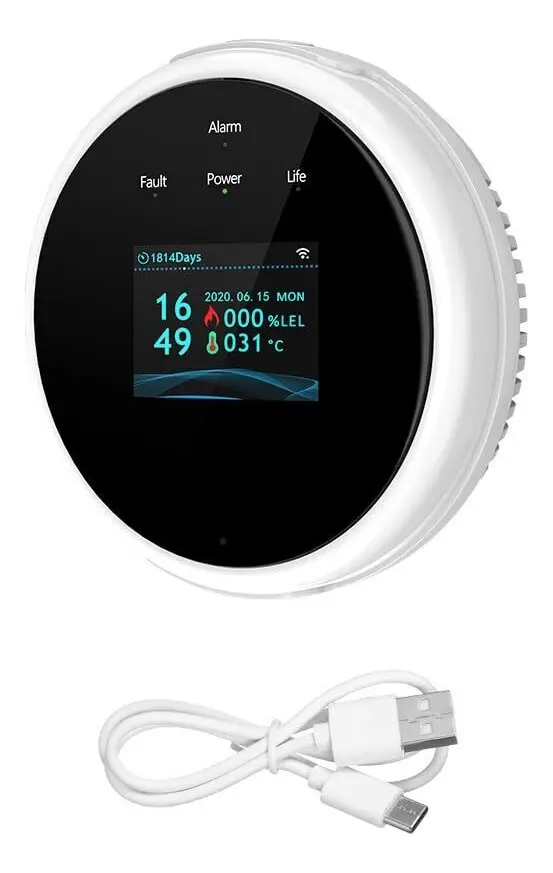 Este detector inteligente no solo detecta gas natural y GLP, sino que también actúa como alarma de incendios. Con su conexión WiFi de 2.4 GHz, recibirás alertas en tiempo real en tu móvil a través de la aplicación Smart Life. Su pantalla LCD a color permite una lectura fácil de la concentración de gas y temperatura, ofreciendo una respuesta automática que puede cerrar la fuente de la fuga para evitar accidentes.